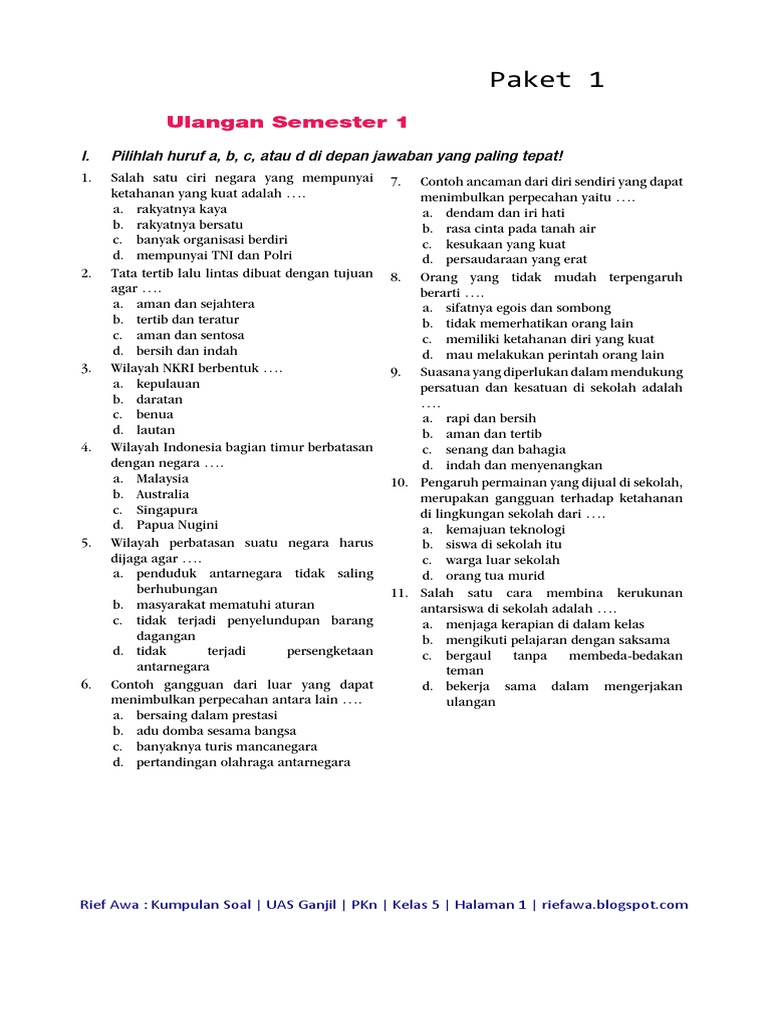 Soal uas pkn kelas 5 semester 2 kurikulum 2013. Check spelling or type a new query. We did not find results for: Maybe you would like to learn more about one of these?